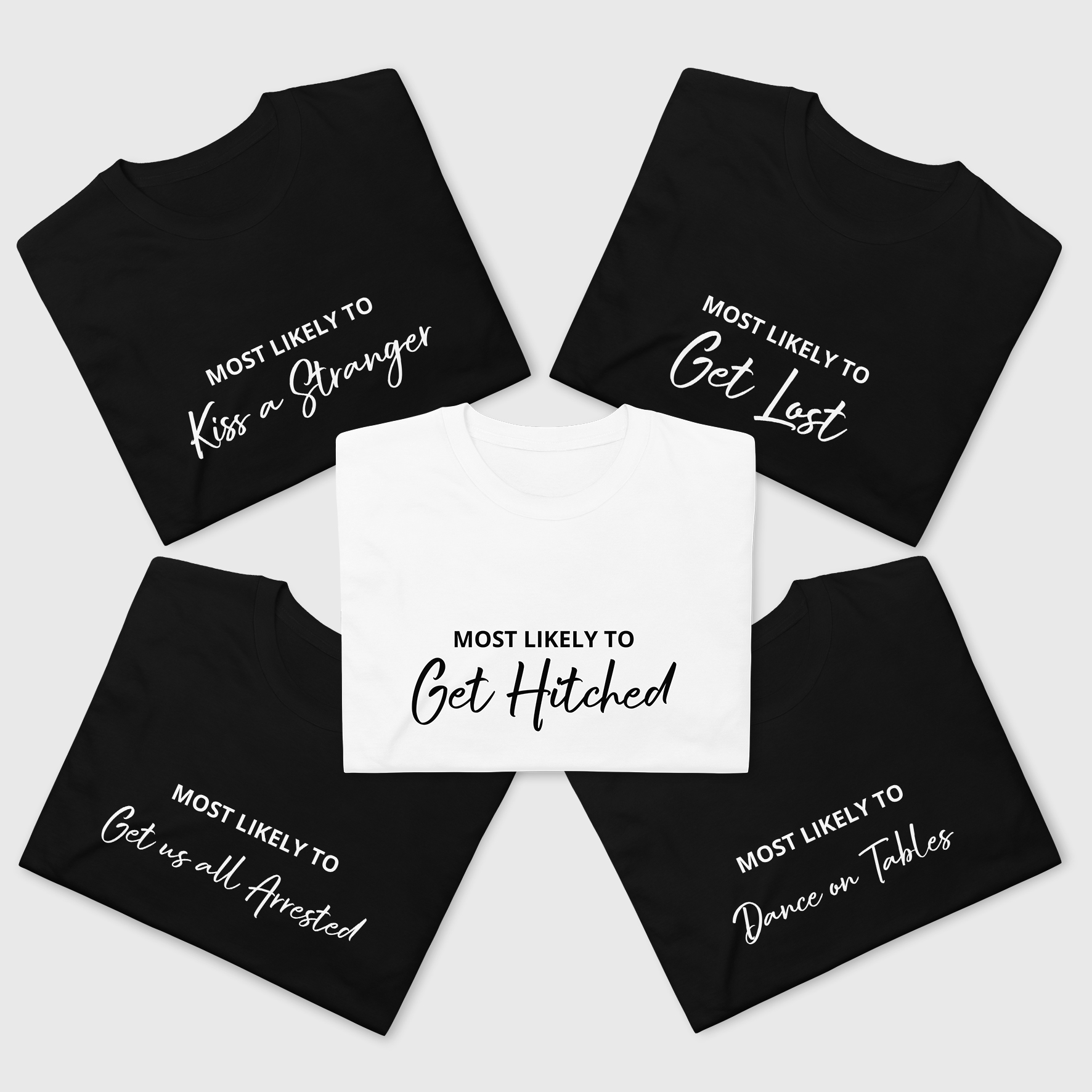 The Tribe, Most likely to: Be Late, Get us all Arrested, Get Lost, Dance on Tables, Pass Out, Go to Bed Early, Look After Everyone, Be Hungover, Kiss a Stranger, Get Wasted.