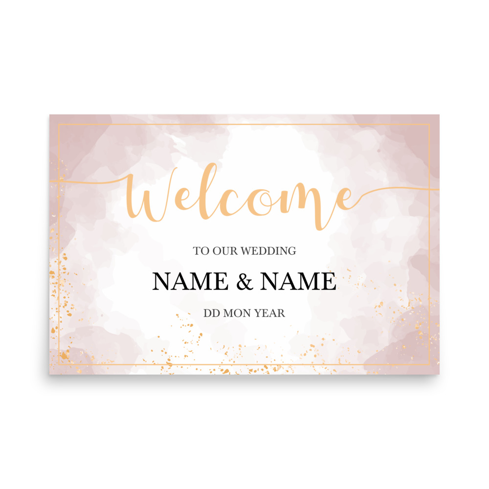 Customisable Wedding Welcome Sign – Dusk Rose & Gold made on thick matte paper.